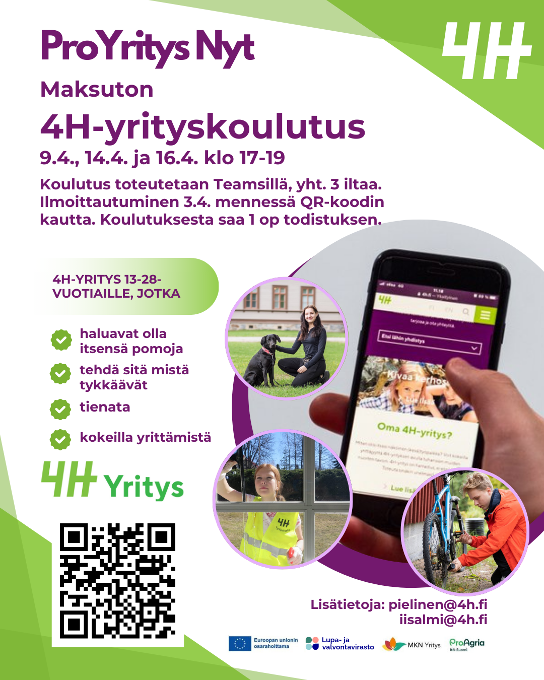 Tarjoamme nuorille työllistymismahdollisuuksia kerho- ja leiriohjaajina sekä Helppi -keikkatyössä erilaisissa asiakaspalvelutehtävissä. Jo 50:llä alueemme nuorella on oma 4H-yritys.