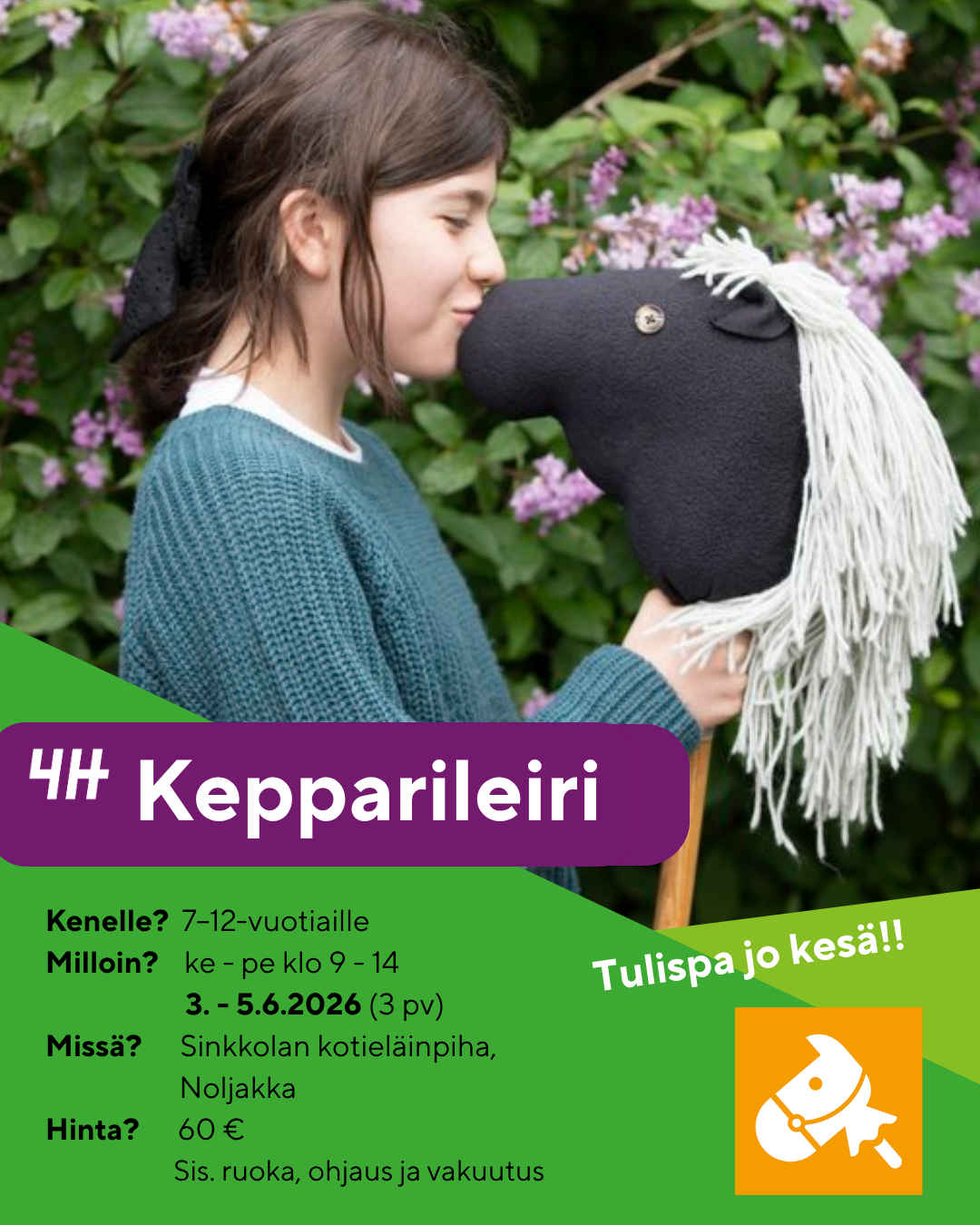 3-päiväisellä keppihevosteemaisella leirillä uppoudutaan täysin keppihevosmaailmaan. Ohjaajina ovat jo edellisen kesän leiriohjaajina ja kerhonohjaajista tutut Nea ja Alma sekä meidän ihka uudet, kesälle valitut leiriohjaajat.